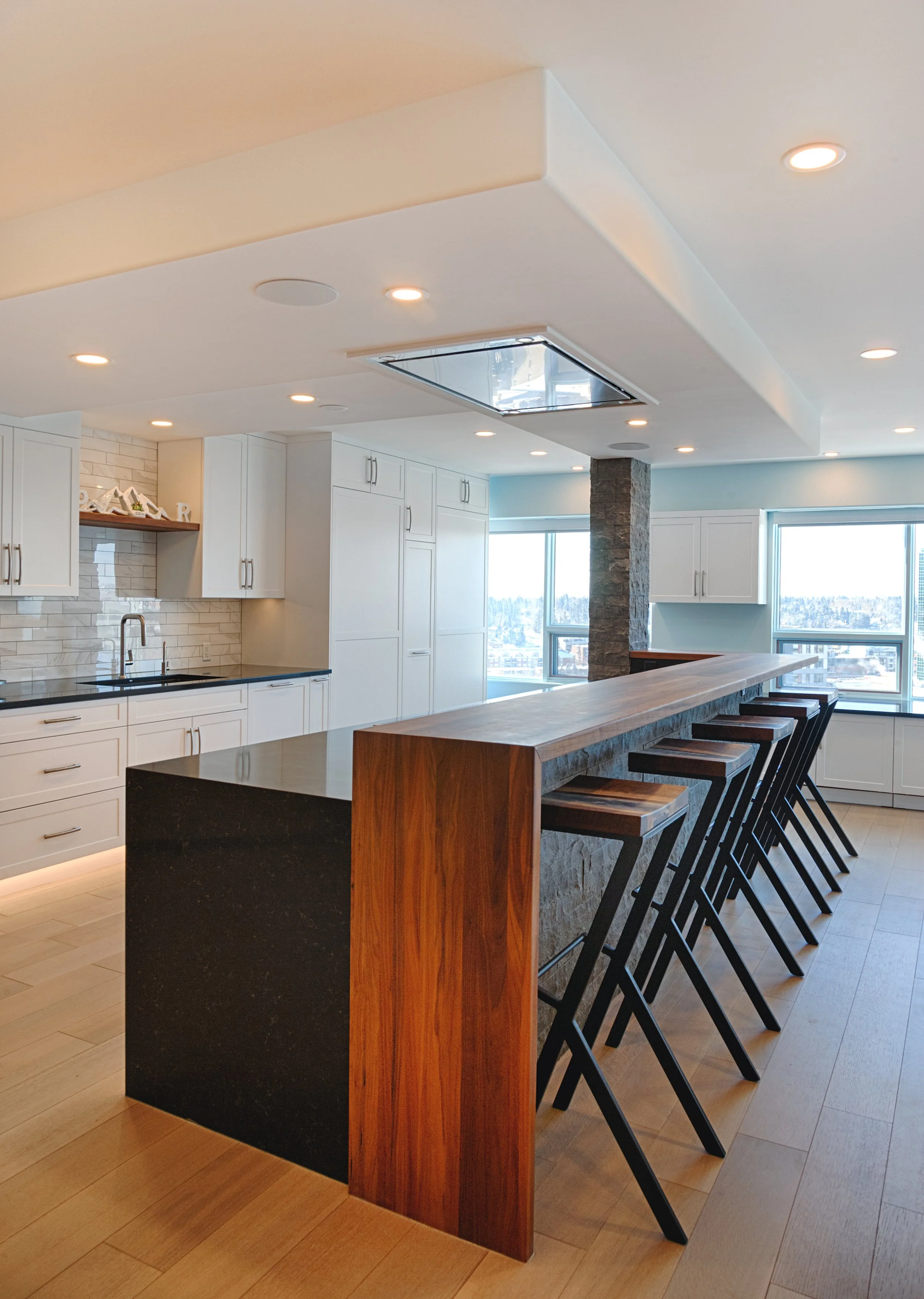 Designing and renovating in a concrete and steel tower presents different challenges than we have in ground-level, wood framed homes. Acoustics and neighbours, fire ratings, service shut offs, ceiling drops, space efficiency and working around immoveable objects pose challenges and opportunities.